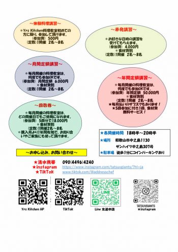 Yrs Kitchen料理教室の生徒さん、新規募集です!