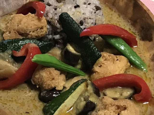 たっぷり野菜のイエローカレー 大豆ミートフライと共に